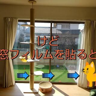 北島町でフィルム施工させて頂きました😊 キャットタワーを窓際に設置していますが、普段は外からの視線が気になるのでレースカーテンしています。 可愛いネコちゃんに外の景色を見せてあげたいということで、ミラーフィルムを施工しました😸 これからはカーテン全開で快適に過ごせると思います このミラーフィルムを貼ると ガラス割れの飛散防止+紫外線カット+遮熱+日照調整まで効果が付いてきます✌お得〜